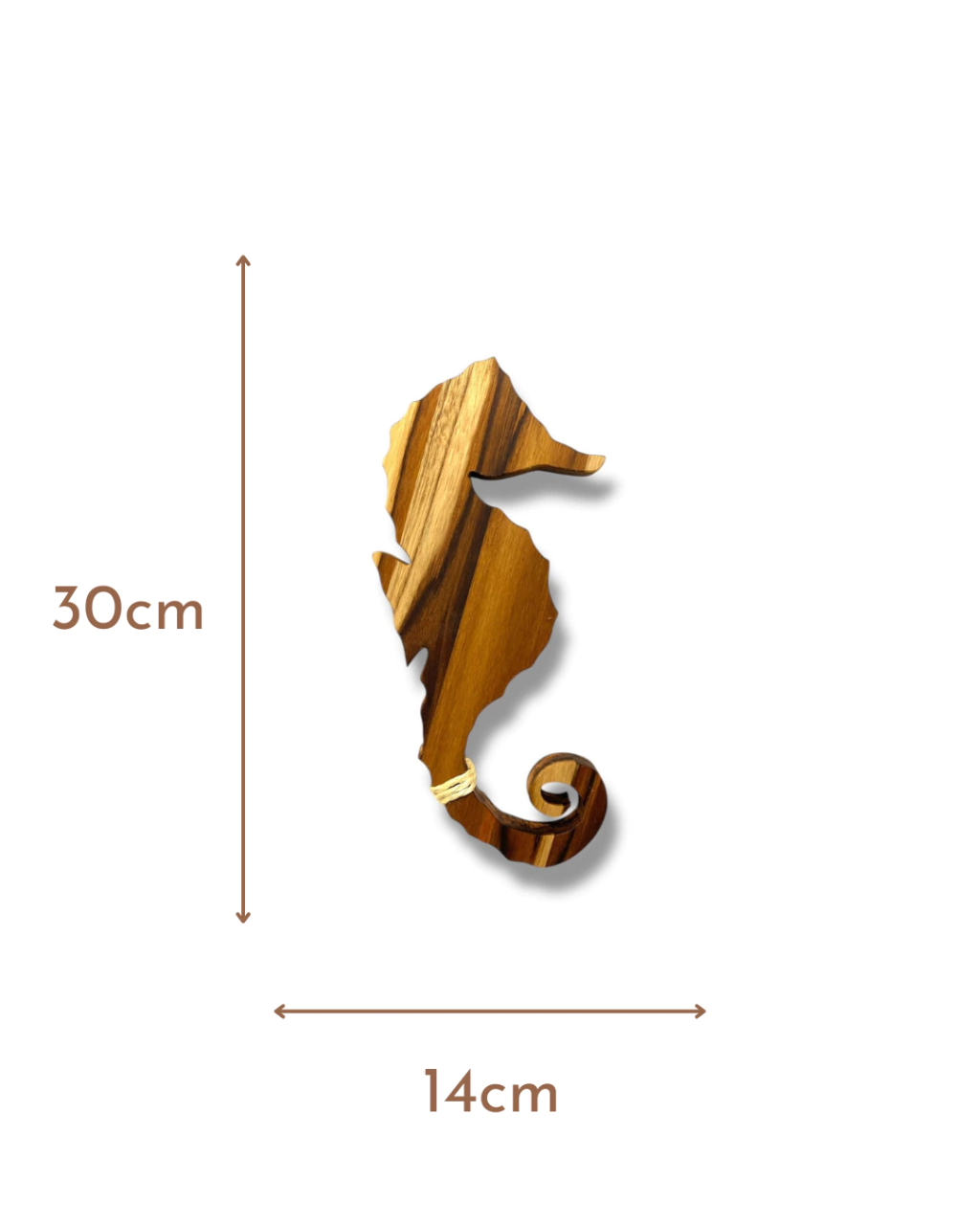 Cada peça é leve (peso aproximado entre 100 g e 1 kg) e possui furo no verso de 6mm ou 9mm para fixação direta na parede com prego ou parafuso com bucha. Não recomendamos o uso de fitas adesivas, pois o acabamento em óleo natural pode impedir a aderência e causar quedas.