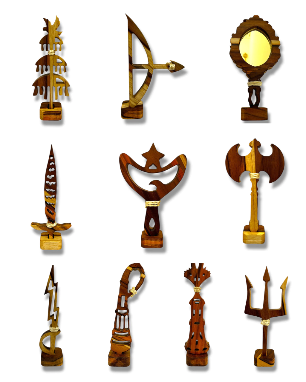 Inspiradas na Umbanda, no Candomblé e nas tradições afro-brasileiras, representam Orixás, Entidades espirituais e símbolos sagrados com profundo respeito à ancestralidade e à arte sacra.