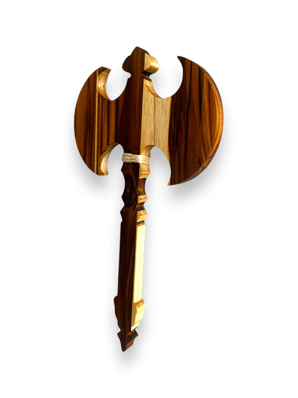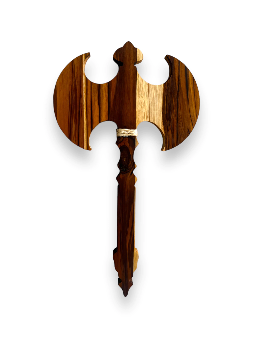 As esculturas do Atelier Bruno Glad são peças artesanais únicas, feitas à mão em madeira nobre teca com 2 cm de espessura, acabamento em óleo mineral que protege e realça os veios da madeira, e detalhes em corda de sisal, trazendo um toque rústico e sagrado.