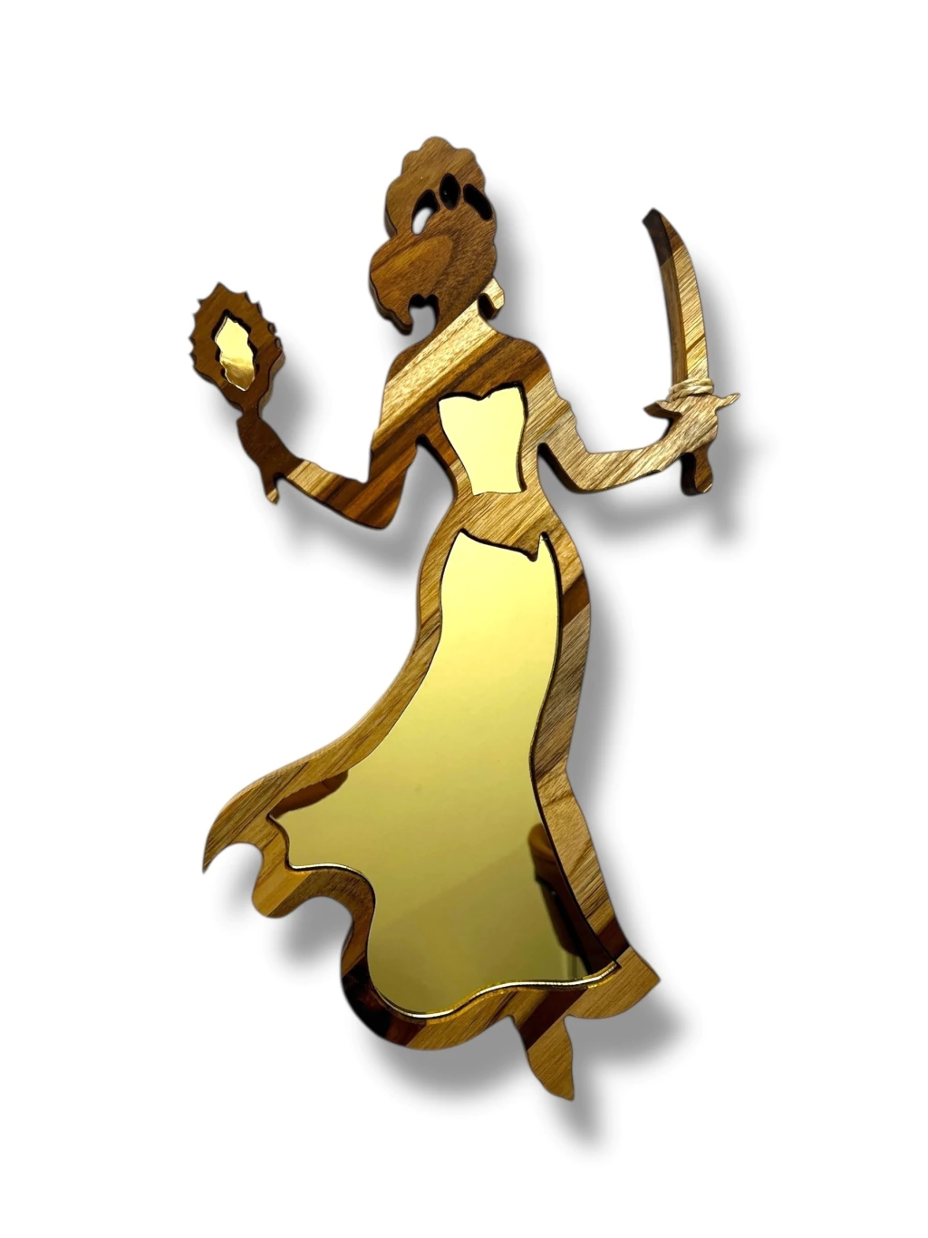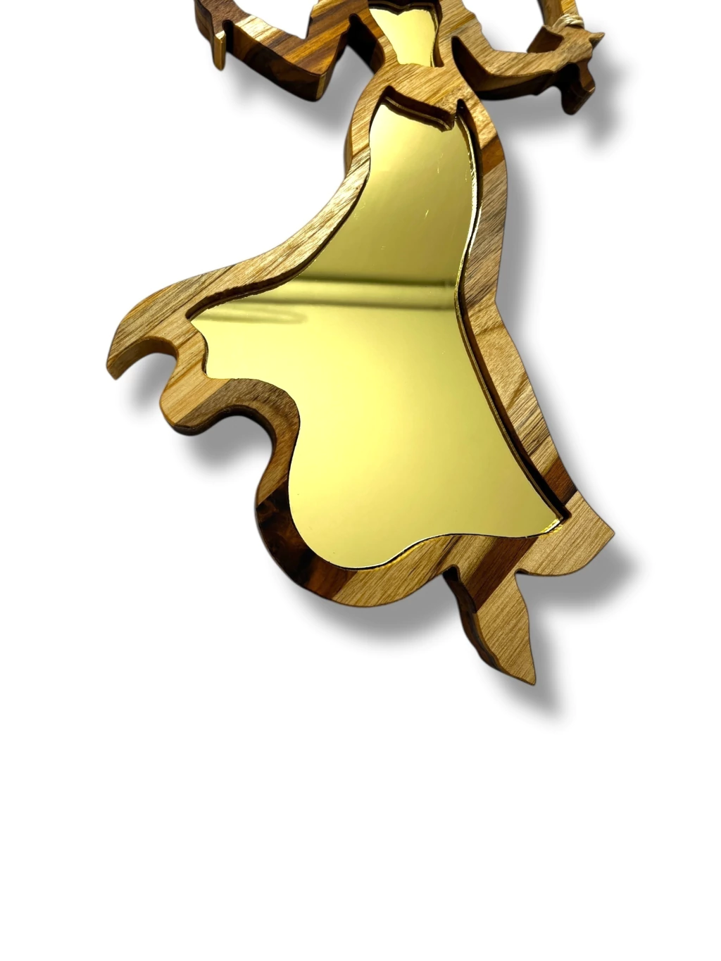 As esculturas do Atelier Bruno Glad são peças artesanais únicas, feitas à mão em madeira nobre teca com 2 cm de espessura, acabamento em óleo mineral que protege e realça os veios da madeira, e detalhes em corda de sisal, trazendo um toque rústico e sagrado.