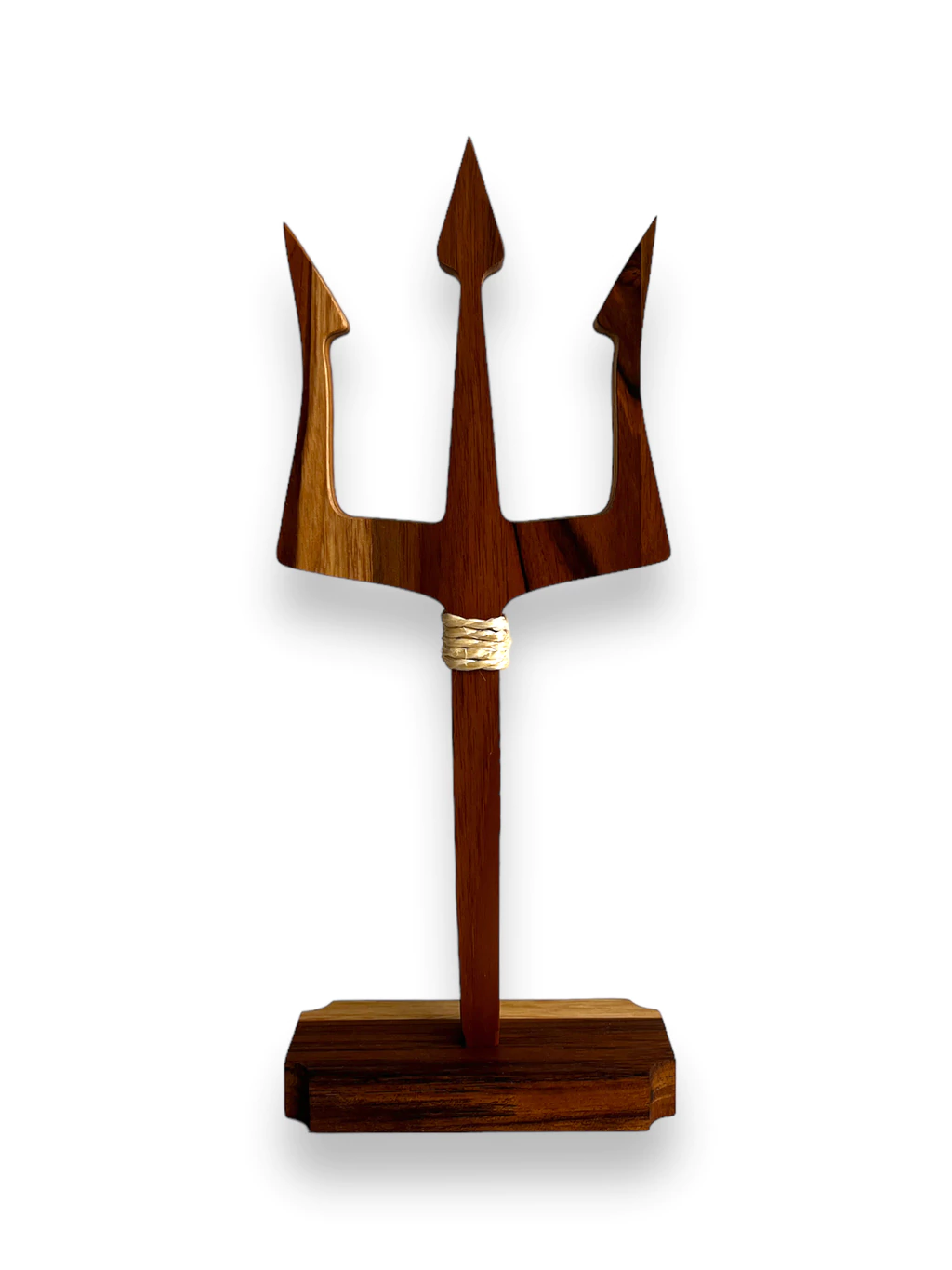 As esculturas do Atelier Bruno Glad são peças artesanais únicas, feitas à mão em madeira nobre teca com 2 cm de espessura, acabamento em óleo mineral que protege e realça os veios da madeira, e detalhes em corda de sisal, trazendo um toque rústico e sagrado.