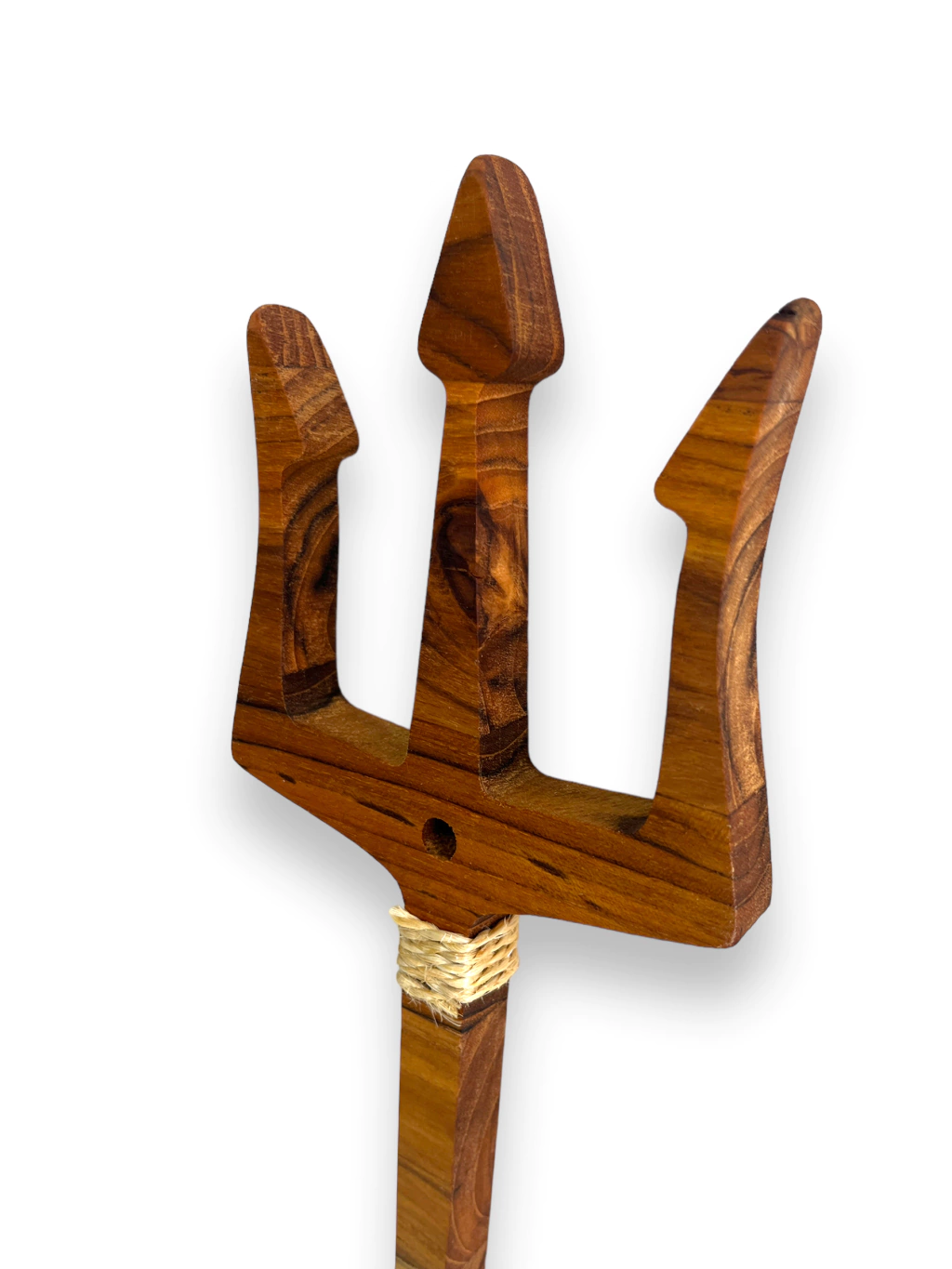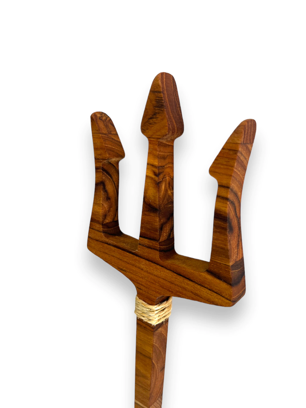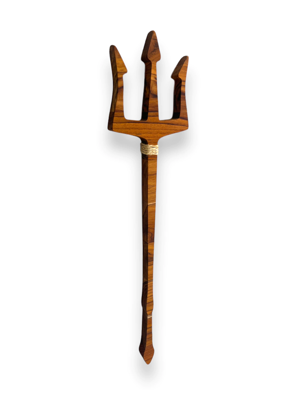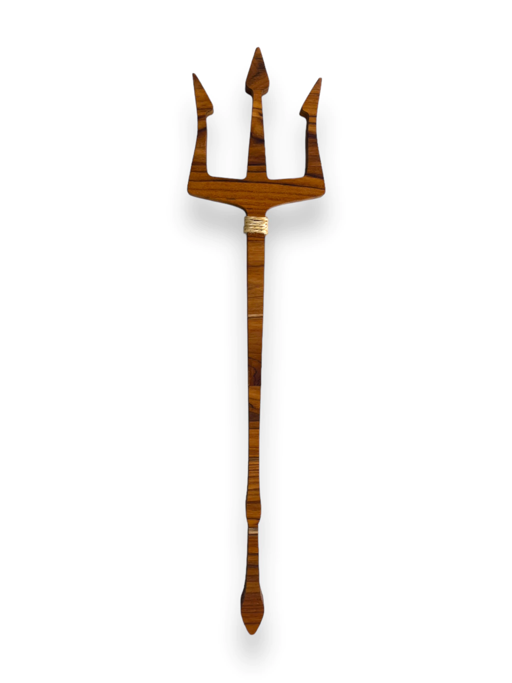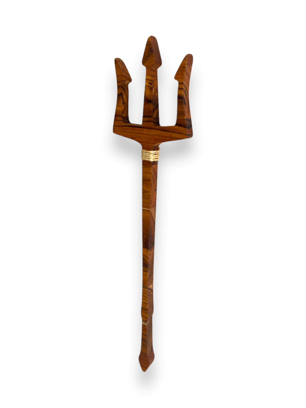 As esculturas do Atelier Bruno Glad são peças artesanais únicas, feitas à mão em madeira nobre teca com 2 cm de espessura, acabamento em óleo mineral que protege e realça os veios da madeira, e detalhes em corda de sisal, trazendo um toque rústico e sagrado.